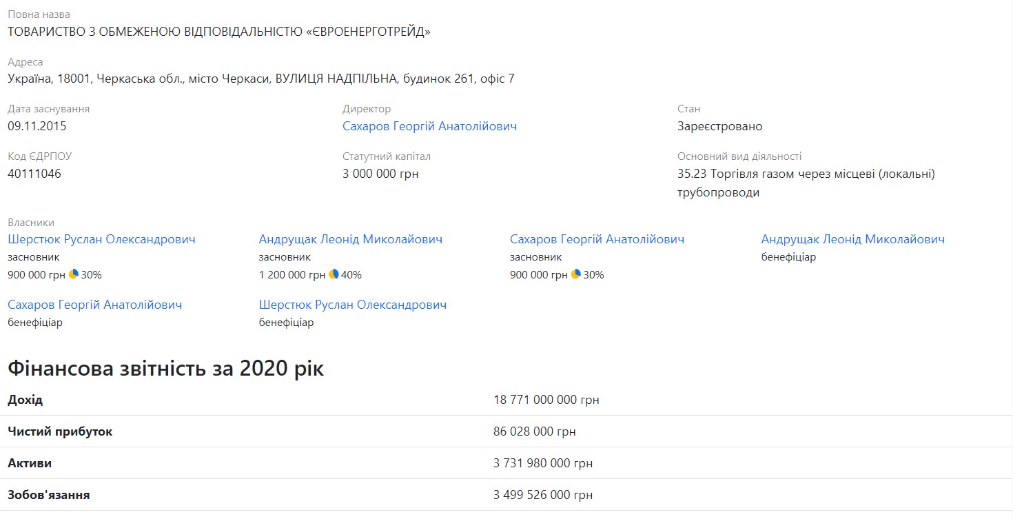 Почнемо із ТОВ «Євроенерготрейд». Фірма зареєстрована в Черкасах і справді прізвища Кохан в її засновниках немає:
