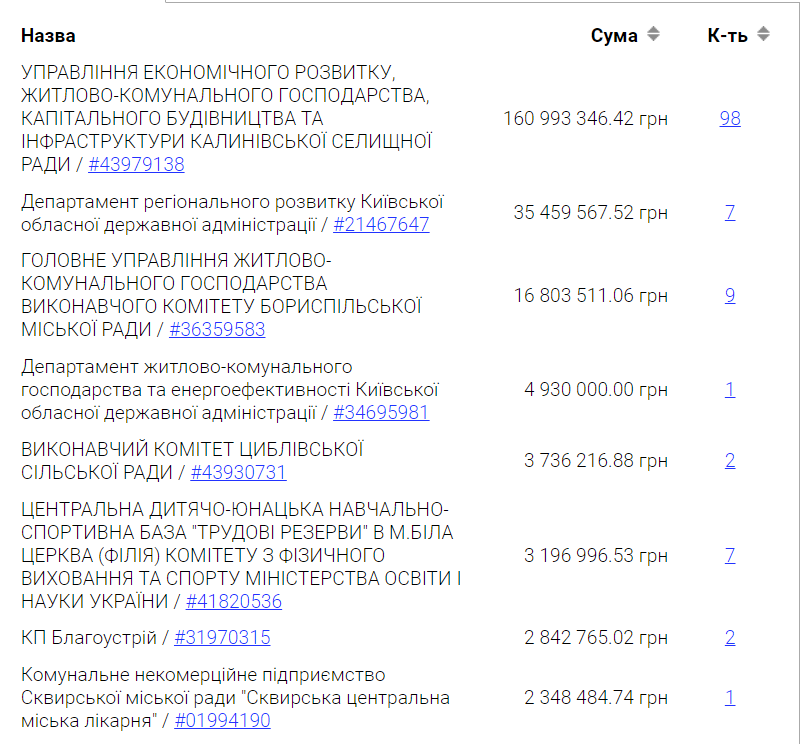Згідно з інформацією Clarity-project, у результаті участі в публічних закупівлях ТОВ “Буд Пром Лайн” підписало вже 162 договори на загальну суму в понад 232 млн гривень.