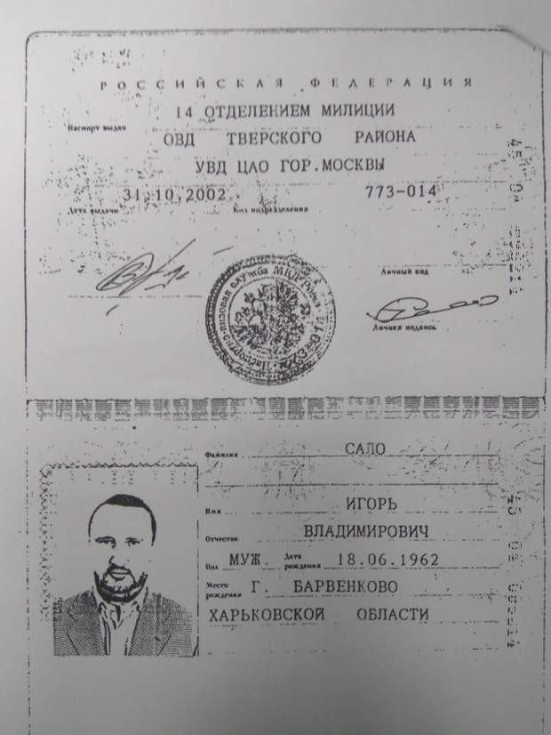 Російський паспорт Ігоря Сала