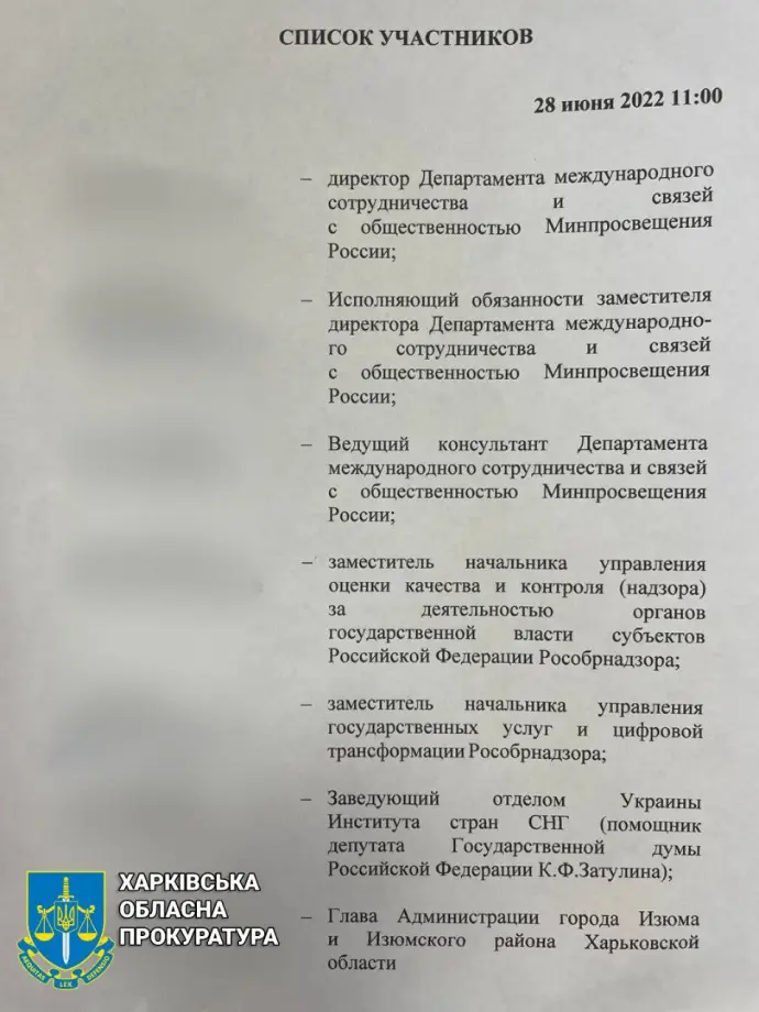 Серед документів – «материалы к совещанию по вопросам поддержки и развития систем образования Харьковской области». Одним з кураторів цього процесу було «Министерство просвещения Российской Федерации».