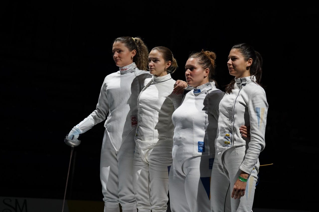 На шляху до срібної нагороди шпажистки змусили скласти зброю чинних чемпіонок світу кореянок (45:39) та бронзових медалісток останньої світової першості Польщу (44:37), поступившись лише у фіналі збірній Італії (28:33).