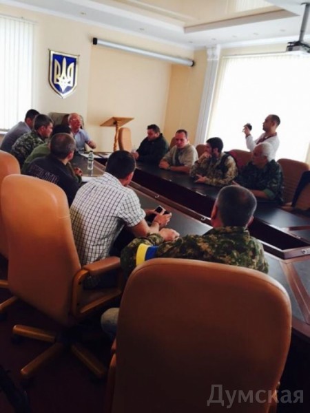 Беспорядки в Ильичевске. Представители патриотических организаций и участники войны на востоке страны заблокировали городской совет, где проходит последняя сессия этого созыва. Им попытались помешать сторонники мэра Валерия Хмельнюка.