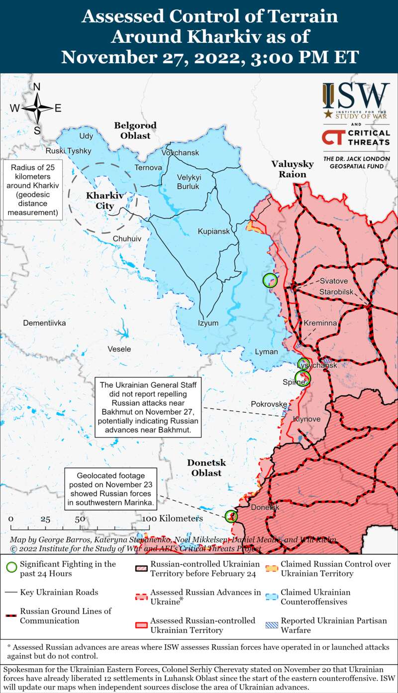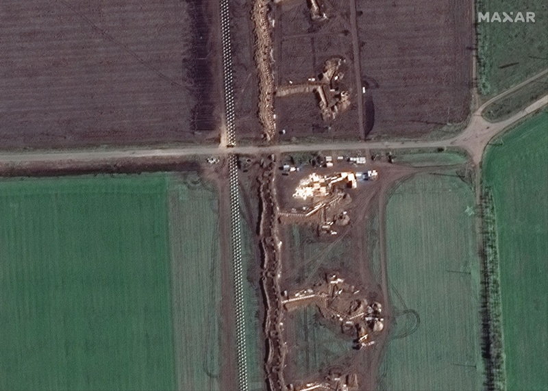 Супутникові знімки показують, що російські сили приділяють першочергову увагу копанню траншів та зведенню протитанкових оборонних споруд типу "зуб дракона" вздовж укріплень, які з’єднують російські сили на східному (лівому) березі річки Дніпро з південно-східними тиловими районами в Херсонській області. також із східними тилами в районі Мелітополя Запорізької області.