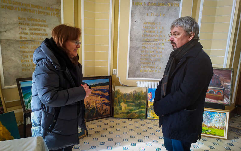 Секретар Краєзнавчого музею Олена Єрьоменко розповідає, що співробітники СБУ та прокуратури два дні проводили у музеї слідчі дії та опитували співробітників. Оскільки правоохоронці закінчили роботу, вона погодилася показати Ґратам як виглядає музей після окупації.