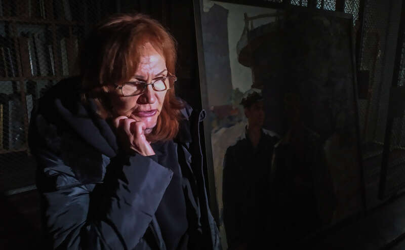 Розпрощавшись із міністром, який вирушив до Краєзнавчого музею, директорка Аліна Доценко, експресивна жінка, у товстих окулярах та дутій куртці, запрошує кореспондента «Ґрат» подивитися музейні фонди. Темне приміщення розділене на дві частини рядами стелажів з картинами. Більшість з яких порожні.