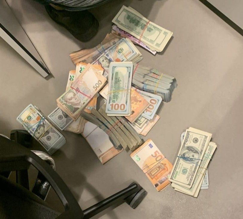 Крім того, було вилучено мобільні телефони, електронні носії інформації, чернові записи, печатки та гроші у сумі 860 тисяч гривень, 330 тисяч доларів США та 34 тисяч євро, походження яких встановлюється.