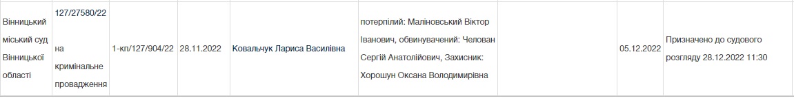 Втім у подальшому правоохоронцям ймовірно вдалося "спакувати" Сергія Челована. З матеріалів порталу "Судова влада" випливає: вже у жовтні 2022 року його захисник оскаржувала обраний "втікачу" запобіжний захід у вигляді тримання під вартою в стінах Вінницької установи виконання покарань №1 в рамках кримінальної справи про напад на Віктора Маліновського. Наприкінці листопада силовики скерували обвинувальний акт у цьому провадженні до суду.