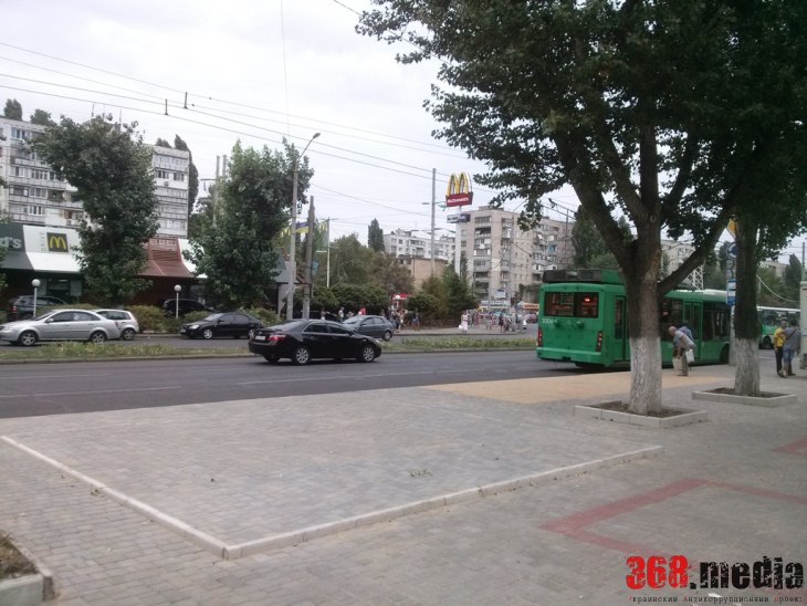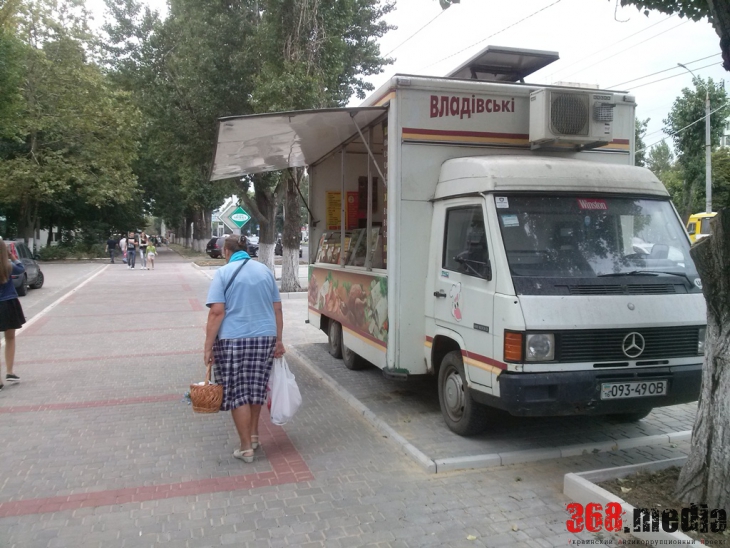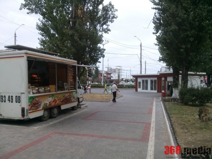 Бизнесмен застелил плиткой еще один участок тротуара, уничтожив значительную часть газона, чтобы разместить еще две площадки для будок. На одной из них уже стоит трейлер, где готовят «кур-гриль». Второе – пока пустует. Примечательно, что на другой стороне проспекта Глушко мэрия так и не сподобилась навести даже такой порядок. Квартал плотно заставлен десятками будок.