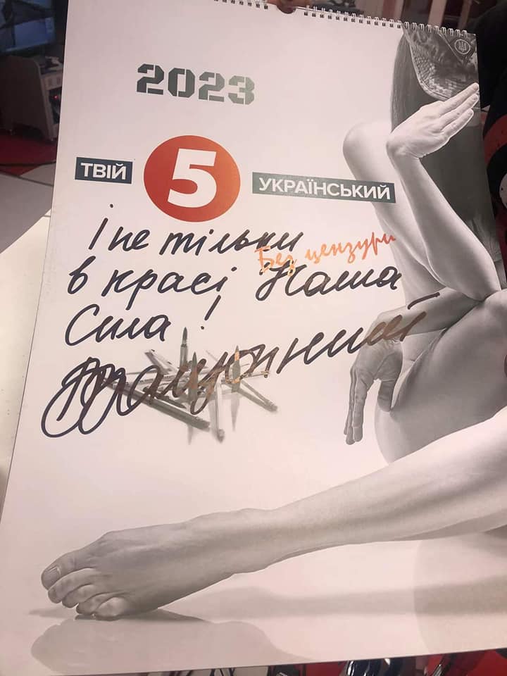 Головнокомандувач ЗСУ Валерій Залужний розписався на календарях зню-фотографіями журналісток “5 каналу”.
