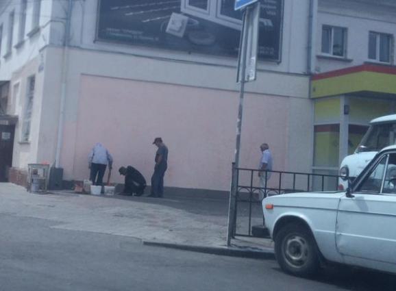 Фотофакт: В окупованому Сімферополі вже зафарбували портрет Путіна