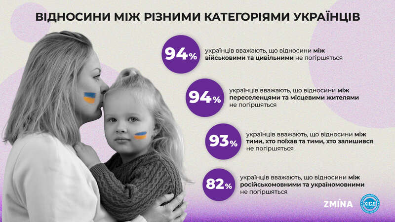 Післявоєнні конфлікти та громадське непорозуміння між різними категоріями українців не сприймаються як вірогідні сценарії. Проявом згуртованості є й помітне покращення ставлення до української влади. Певна напруга є хіба що в мовному питанні — ставленні до російськомовності в Україні.