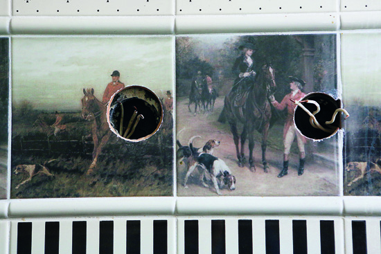 Входные двери в один из домов аккуратно вырезаны вместе с дверной коробкой, и ветер заносит в пустую прихожую опавшие листья. Рядом с дверным проёмом — труп небольшого животного. Межкомнатные двери тоже аккуратно срезаны, на лестницах нет перил.