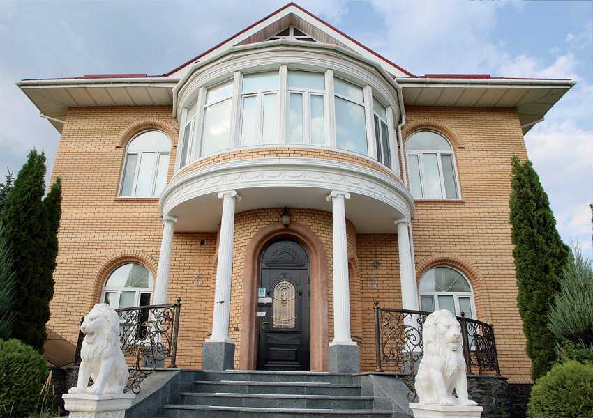 Опечатанную дверь в дом стерегут два белых каменных льва с оскаленными пастями. На дверях рядом с выгоревшими на солнце печатями Генпрокуратуры ещё две цветные печати — Правого сектора и Самообороны. «Чекай у гості» — написано на одной из них.