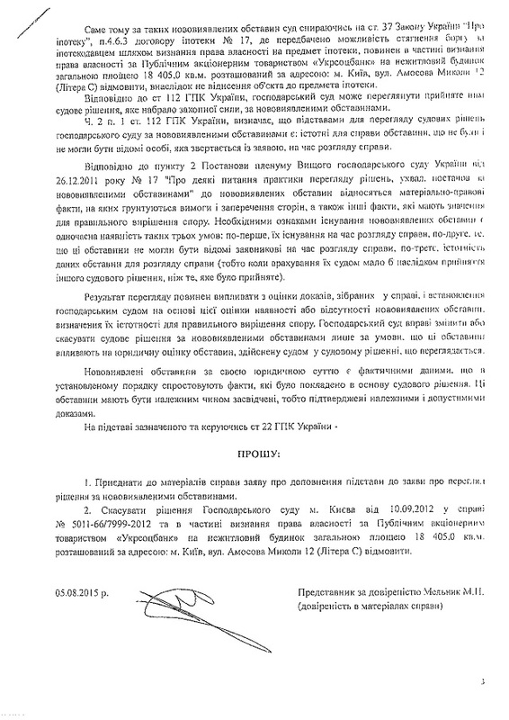 Именно он просил судей решить «по справедливости» вопрос об отмене регистрации права собственности на здание по ул. Амосова 12С за «Укрсоцбанком» в пользу «Проекта А». ВАСУ тогда отказал в удовлетворении жалобы «Проекта А» и тогда юристы Осьмухина придумали новую историю – о «вновь выявленных обстоятельствах» с оценщиком.