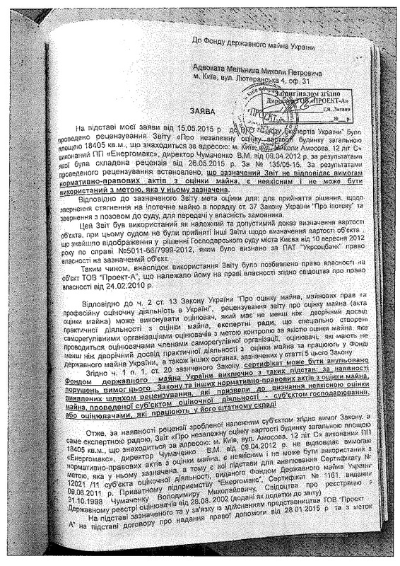 Кроме того, Мельник также просил Фонд госимущества аннулировать лицензию оценщика, который проводил оценку имущества в процессе признания права собственности Банка на него в 2012 году.