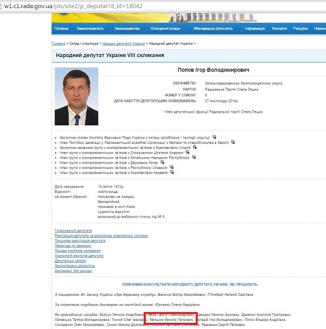 Получается, что помощник народного депутата не просто «бесхозно» «левачит», подрабатывая адвокатской деятельностью в рамках корпоративных конфликтов с элементами рейдерства. А делает это как минимум с ведома своего непосредственного руководителя в Верховной Раде – Игоря Попова. Между прочим, заместителя комитета по вопросам предотвращения ипротиводействия коррупции в Верховной раде, члена постоянной делегации Украины в ОБСЕ.