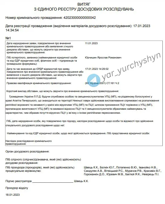 «Перевірив це звернення до ГПУ. Вони дотримуються тієї самої думки. Результат — відкрите кримінальне провадження проти Павла Лебедя (у документі Л.П.Д.)», — додав нардеп.