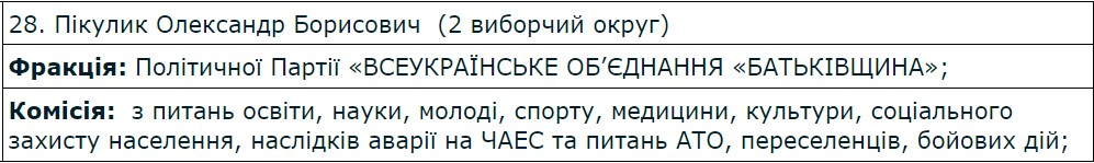 Як уже згадувалося, Олександр Пікулік є чинним депутатом Ірпінської міської ради від партії «Батьківщина». Більше того – він член комісії із захисту, у тому числі і переселенців, і жертв бойових дій: