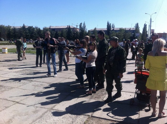 По случаю Дня шахтера в центре оккупированной Горловки террористы организовали выставку тяжелого оружия, которое, согласно Минских договоренностей, должно быть отведенным. Так, на центральной площади стоят РСЗО «Град», ЗРК «Стрела», САУ, БТР и танки.