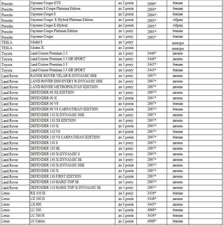 У списку – 229 моделей авто. Йдеться про такі марки, як Porsche, Tesla, Toyota, LandRover, Lexus, Bentley, Jaguar, BMW та Mercedes-Benz.
