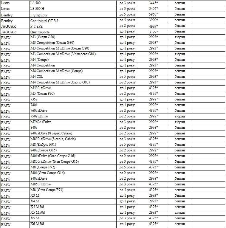 Крім того, залежно від марки, під сплату підпадають авто, не старші за п’ять років.