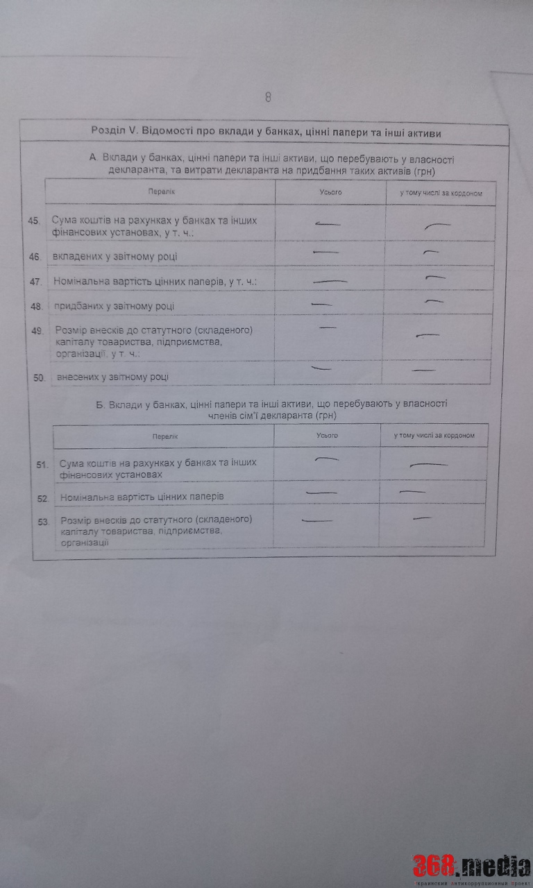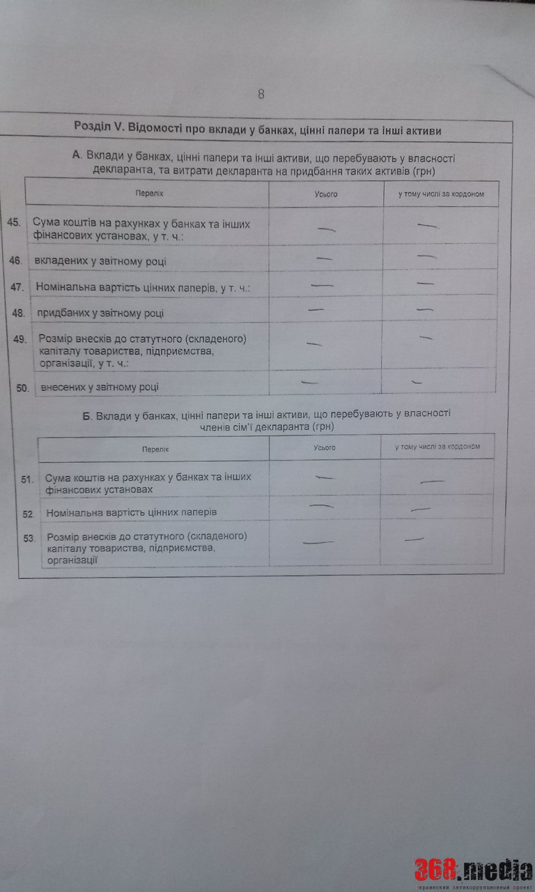 Примечательно, что Юрий Пискун не указал, что владеет какими-либо земельными участками, дачами, квартирами и автомобилями. Также офицер поставил прочерки и в графе «счета в банках», пояснив, что подобных вкладов у него нет. При этом военком почему-то «забыл» указать в декларации свою супругу Татьяну.