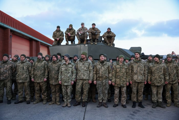 У середу, 8 лютого, Зеленський разом з прем’єр-міністром Великої Британіх Ріші Сунаком відвідав українських військових. Вони навчаються керувати броньованою самохідною артилерійською гаубицею AS90.