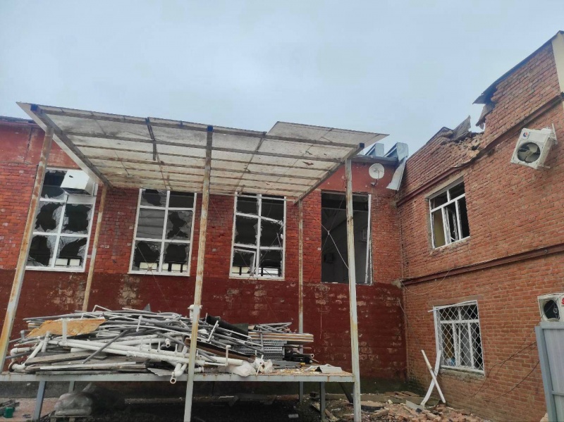 Як стверджує губернотор, три "прильоти" припали на територію промислового підприємства, є руйнування в одному із корпусів. Також один снаряд прилетів до зупинки.