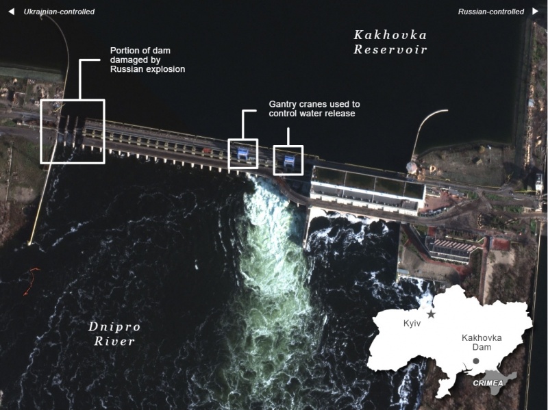 З початку листопада 2022 року вода витікає з Каховського водосховища на півдні України через шлюзи критичної гідроелектростанції, контрольованої російськими військами. У результаті супутникові дані показують, що рівень води у водосховищі впав до найнижчої позначки за три десятиліття.