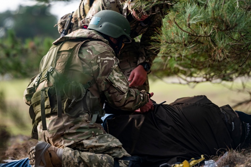 "Військовослужбовці Збройних Сил України в рамках базової загальновійськової підготовки у Великій Британії вивчають застосування загальних принципів домедичної допомоги під час ведення бойових дій в урбанізованій місцевості під керівництвом інструкторів 3-го батальйону Канадської легкої піхоти Принцеси Патриції 1-ї Канадської механізованої бригадної групи 3-ї Канадської дивізії Збройних Сил Канади в рамках операції UNIFIER - UK", - заявили в генштабі.