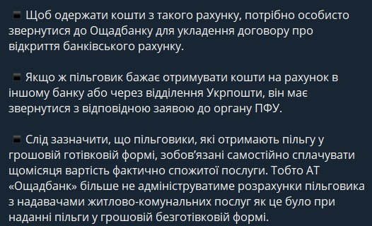 Минулого року пільговики вже отримували пільги у грошовому вираженні, але у вигляді безготівкових переказів на картку "Ощадбанку", звідки вони йшли представникам послуг. Тепер українці отримуватимуть кошти на рахунки пенсійних карток або через відділення Укрпошти.