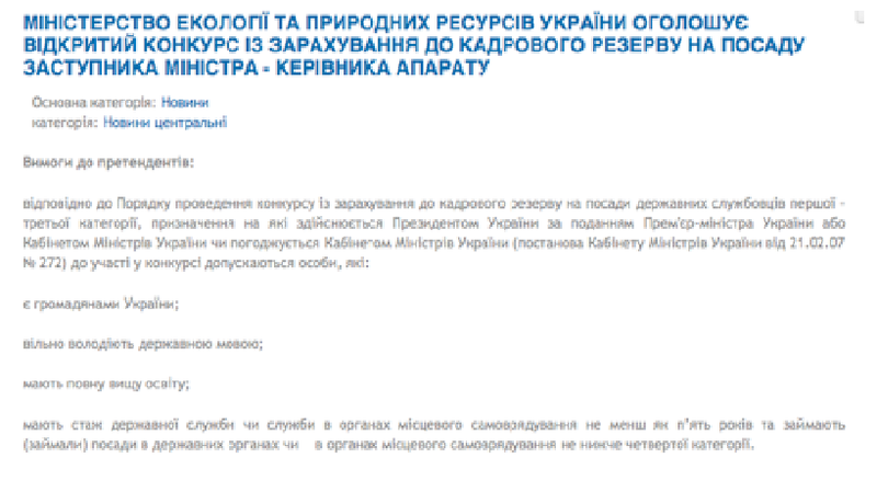 Руководитель аппарата Министерства экологии и природных ресурсов Светлана Коломиец не соответствует требованиям занимаемой должности.