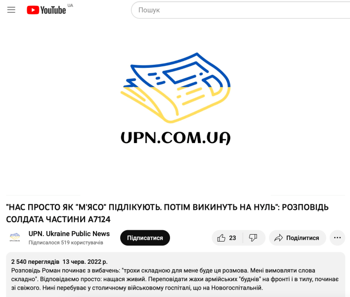 Фокус знайшов онлайн-видання та ютуб-канал з такою назвою. Автор публікував відео, у якому різні люди розповідають про відсутність підготовки мобілізованих хлопців в Україні. В одному з відео чоловічий голос порівнює бійців ЗСУ з м’ясом. Його представляють як пораненого солдата, який перебуває в госпіталі, проте фото або відео з його обличчям відсутні.