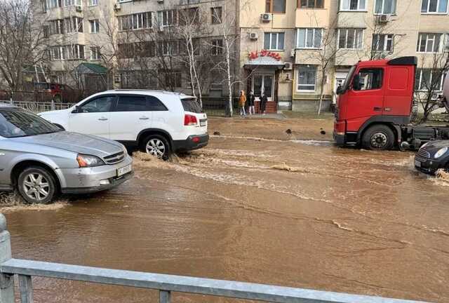 У Дарницькому районі Києва у середу, 22 лютого, внаслідок прориву труби проїзна частина дороги на Драгоманова перетворилася на річку. Крім того, вода затопила навколишні вулиці та двори.
