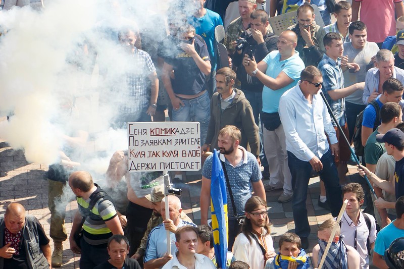 Появились качественные фото человека, который бросил гранату у Верховной Рады. Хорошо видно, что действовал он не один - после взрыва гранаты его сообщник (с усами) прикрывал отход дымовой шашкой.