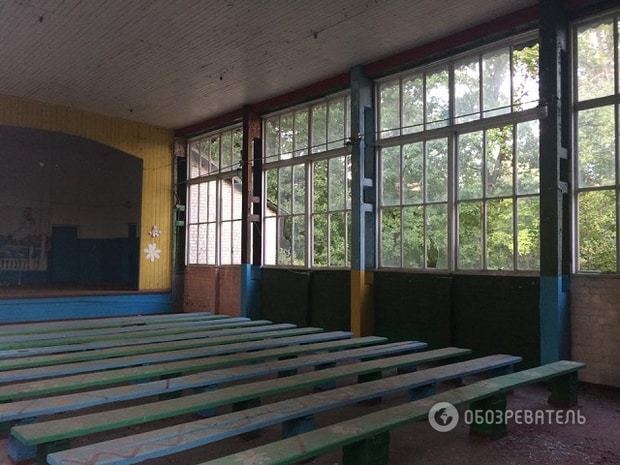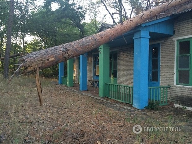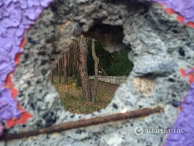 "Мы закрыты уже несколько лет, хотя в прошлом году планировали сделать ремонт и потихоньку открывать смены… Но видите, Что случилось? Сразу за нами есть гостиница, где жили сепаратисты. Я не военный, и точно сказать, откуда и что прилетало, не могу, но наш "Орленок", как видите, очень пострадал. Пули застревали в стенах, пробивали окна. Мины обваливали деревья и секли осколками все вокруг. Одна из пуль залетела прямо ко мне в окно – Слава Богу, никто не пострадал. А еще повезло, что не было перестрелок прямо на территории лагеря, а то тогда бы тут вообще ничего не осталось", - говорит завхоз лагеря Леся Ивановна.