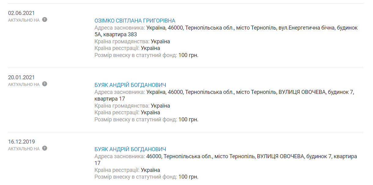 Тільки от дані офіційних реєстрів свідчать про інше. Андрій Буяк заснував компанію у 2016-му році, а головним її бенефіціаром та власником був щонайменше до січня 2021-го року. Замовлення та гроші від ТНПУ компанія отримувала з 2018-го року, загалом “набігло” більше півмільйона бюджетних гривень й лише 75 тисяч з них вже після того, як Андрій Буяк, так би мовити, “залишив” компанію.