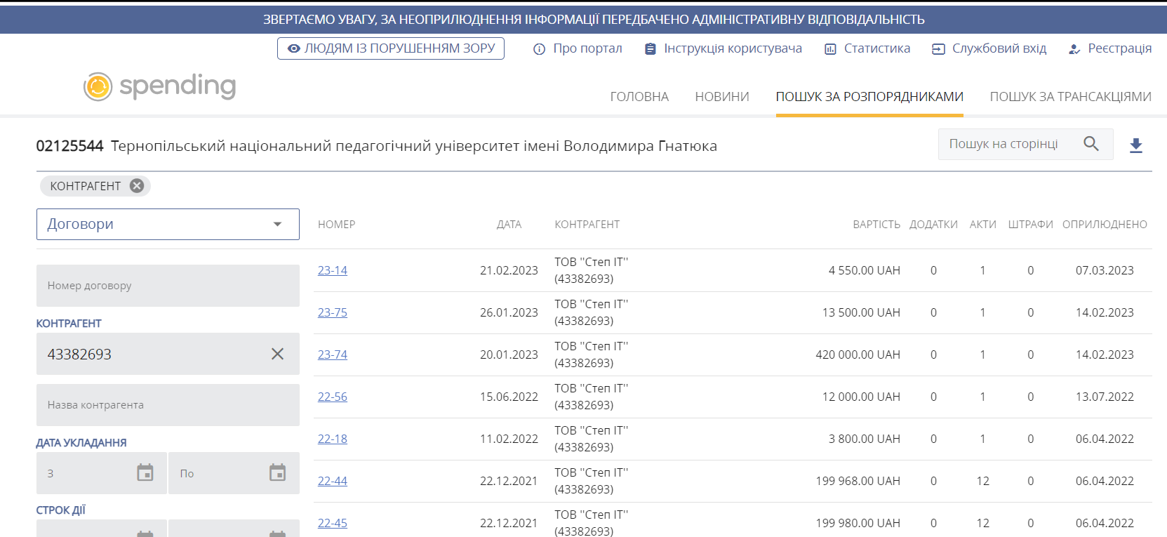 Сама компанія надає схожі послуги не лише ТНПУ, а й кільком тернопільським та львівським університетом. Тільки у порівнянні з іншими, вражають не лише суми, які отримує Степ ІТ, а те, що жодної участі в конкурсах ТНПУ на закупівлі компанія ніколи не брала. Принаймні, про це немає жодних даних у порталі Прозорро, де фіксувалися замовлення між університетом та Степ ІТ з 2020-го року. Як же компанія примудрилась отримати майже 1,9 млн грн за три роки без жодного конкурсу? А тут варто слідкувати “за руками”.