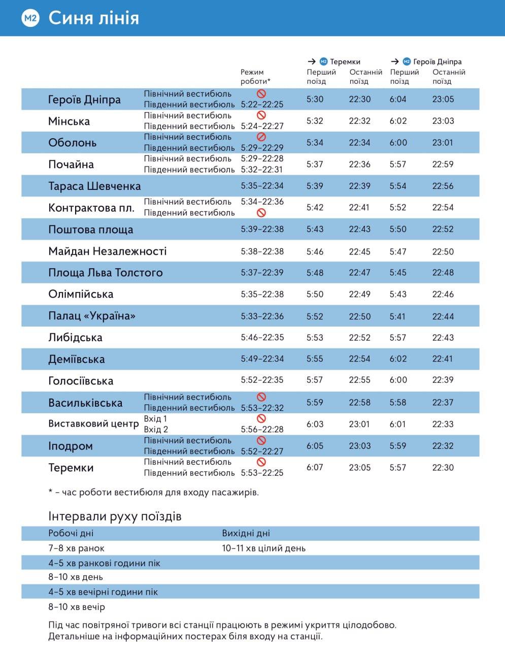 У метро закликають також враховувати, що підземка закривається на вхід у різні часи з урахуванням пригоди останніх поїздів на лінії.