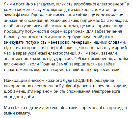 "Укренерго" закликає українців не приєднуватися до "Години Землі" dqxikeidqxiqqeant