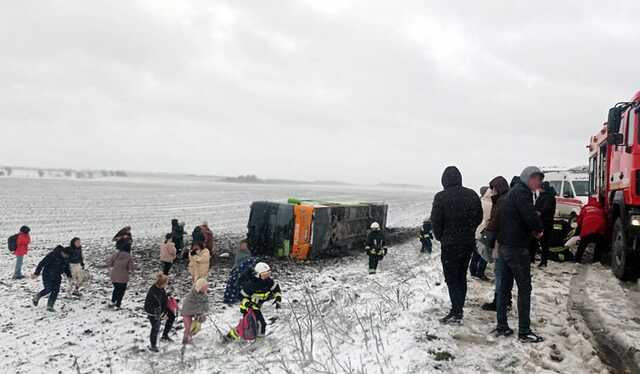 Аварія сталася у Волочинському районі. За інформацією поліції, водій автобуса "Неоплан" сполученням Варшава-Одеса не впорався з керуванням. Транспортний засіб з’їхав у кювет і перекинувся.