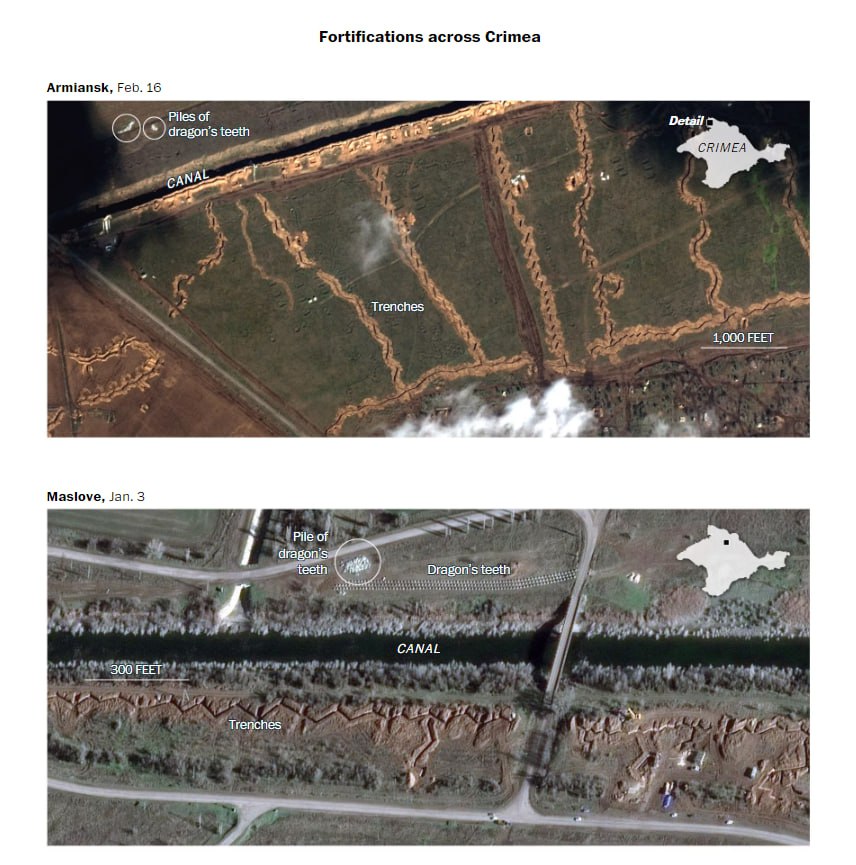 Видання Washington Post публікує супутникові знімки російських укріплень у Криму, який, за даними ГУР, РФ посилено готує до оборони.