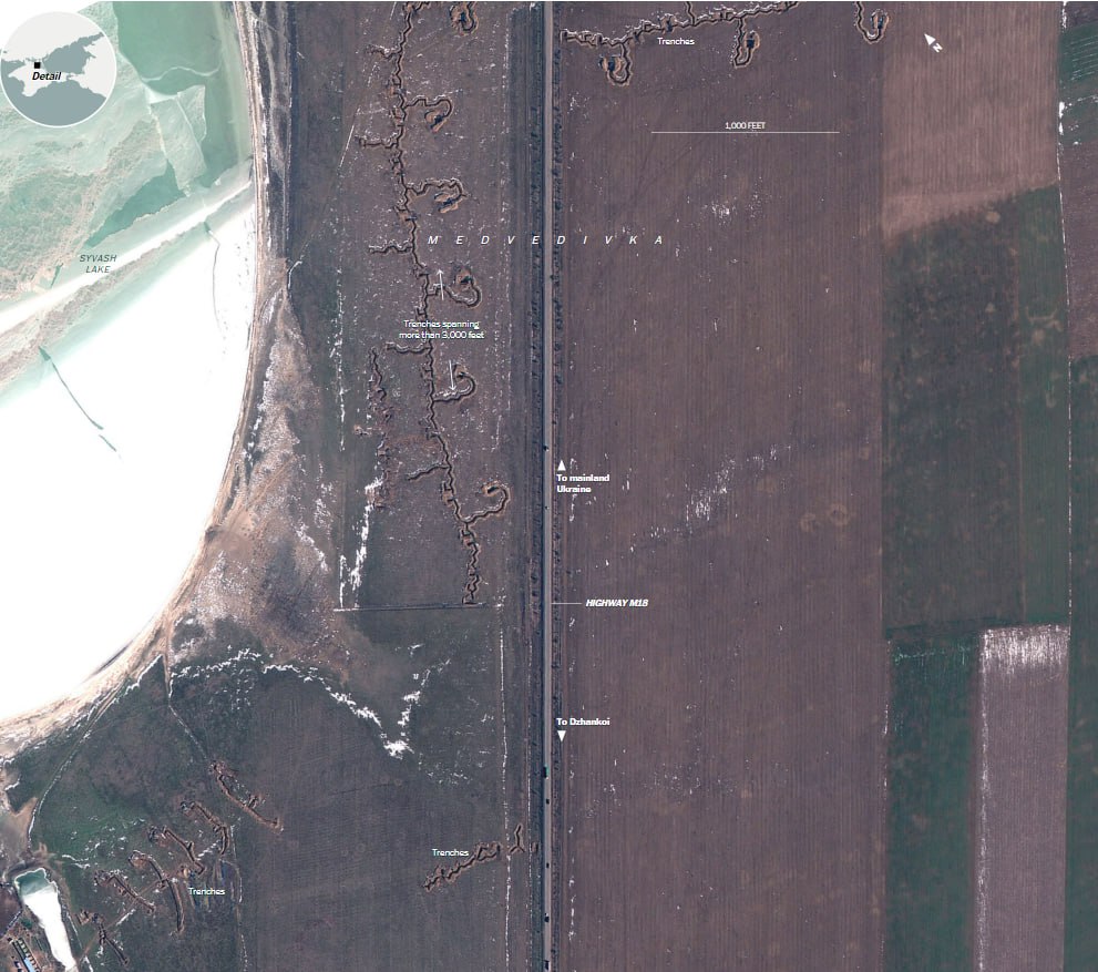 Матеріал під назвою "Павутина траншей показує, що Росія боїться втратити Крим" оприлюднено на сайті газети.