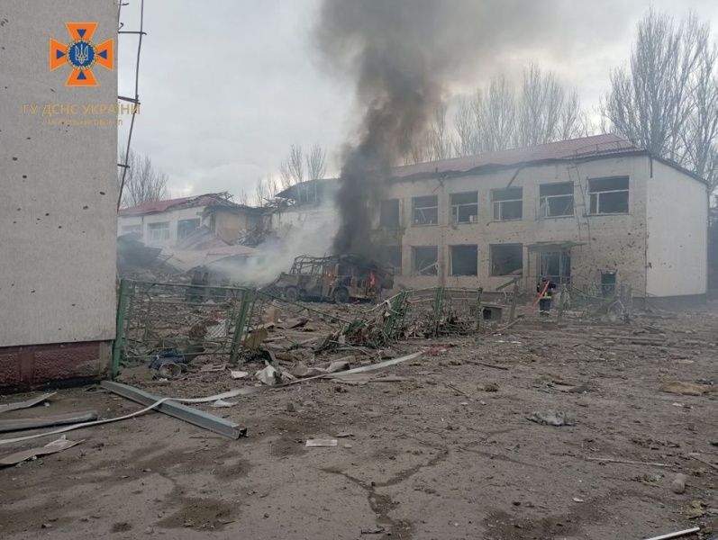 "Пізніше ворог завдав повторного удару, який повністю зруйнував двоповерховий корпус гімназії. Внаслідок ворожої атаки спалахнули уламки будівлі на площі 100 кв.м", - повідомили в прес-центрі.