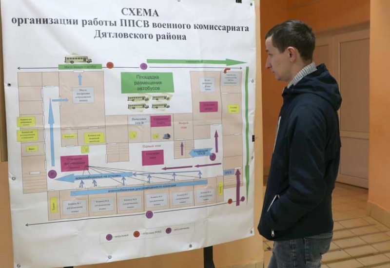 Схеми пунктів були закуплені й для військкомату в Дятловому. А вже 4 квітня у місцевій газеті було опубліковано матеріали про призов військовозобов’язаних на збори. Серед опублікованих фото можна знайти ту саму схему ППСВ.