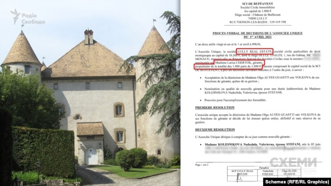 На французькі компанії, кінцевим бенефіціарним власником яких є сестра Ігоря Коломойського Лариса Черток, зареєстровані дві квартири, четверо апартаментів, два підвальні приміщення і два паркомісця навпроти Ейфелевої вежі у Парижі. Також Черток володіє замком, зведеним у 15 столітті, поблизу французького берега Женевського озера та господарськими будівлями і земельними наділами поруч із ним. Про це йде мова в розслідуванні журналістів "Схем", передає Радио Свобода.