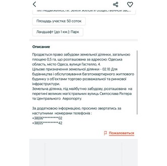 Нещодавно на сайті OLX з’явилося оголошення про продаж «права на забудову» земельної ділянки площею 0,5 га за адресою м. Одеса, вулиця Гастелло 4. Право на забудову одеської землі намагаються продати за 1,2 млн доларів.