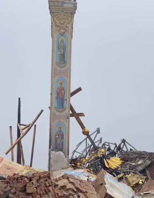 Російські окупанти повністю зруйнували будівлю церкви у Мар’їнці, Донецька область. Цікаво, що собор належав УПЦ Московського патріархату.