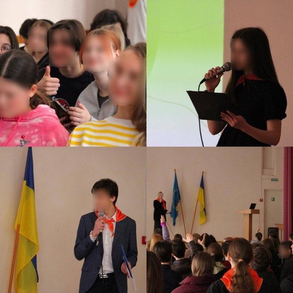 Фото учнів у шкільній формі з атрибутикою, що нагадує піонерську, опублікували на сторінці Печерської районної держадміністрації Києва у Facebook, проте згодом посаду, зважаючи на все, видалили.