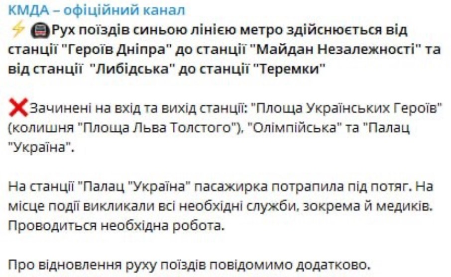 Теги: ІнцидентИнцидентТрагедиятрагедіяКиевкое метроКиївський метрополітенНесчастный случай
